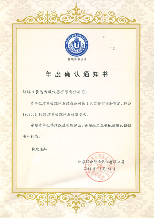 熱烈祝賀本公司已通過ISO9001:2008年度審核